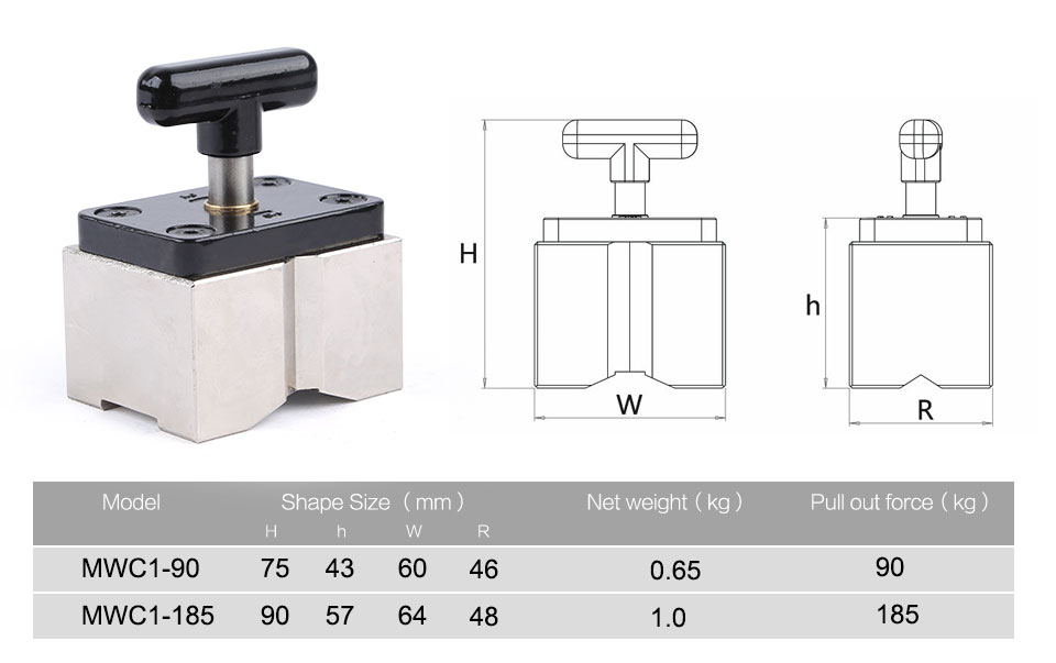 Zvárací magnet/zvárací uhol, zaťaženie 90 kg, uhol 90°