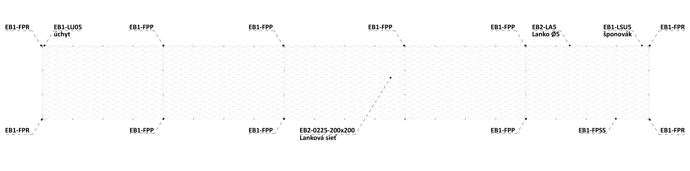 *K Setu fasádnej lankovej sieti je potrebné dokúpiť kotevný materiál pre EB1-FPP a EB1-FPR.