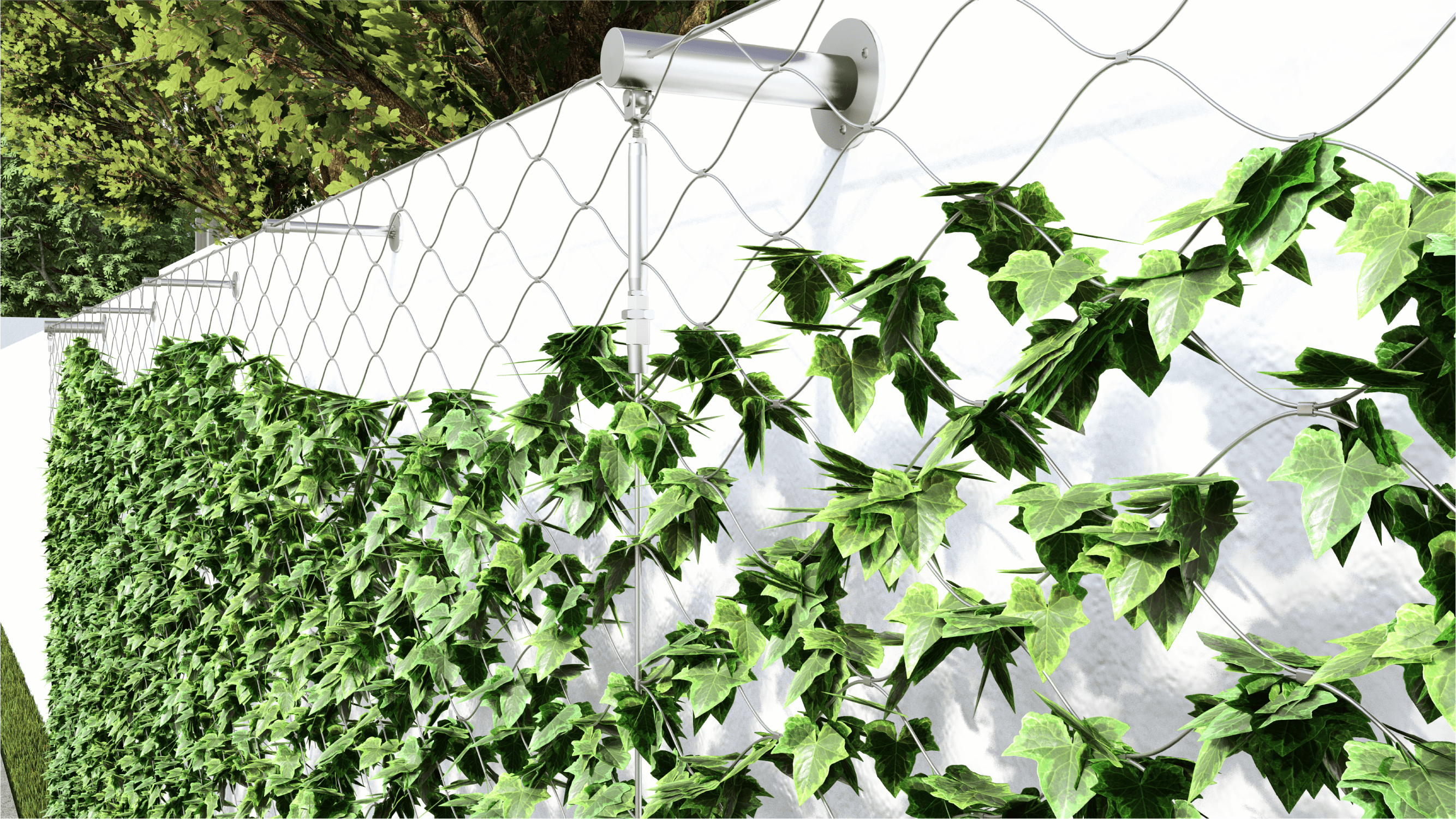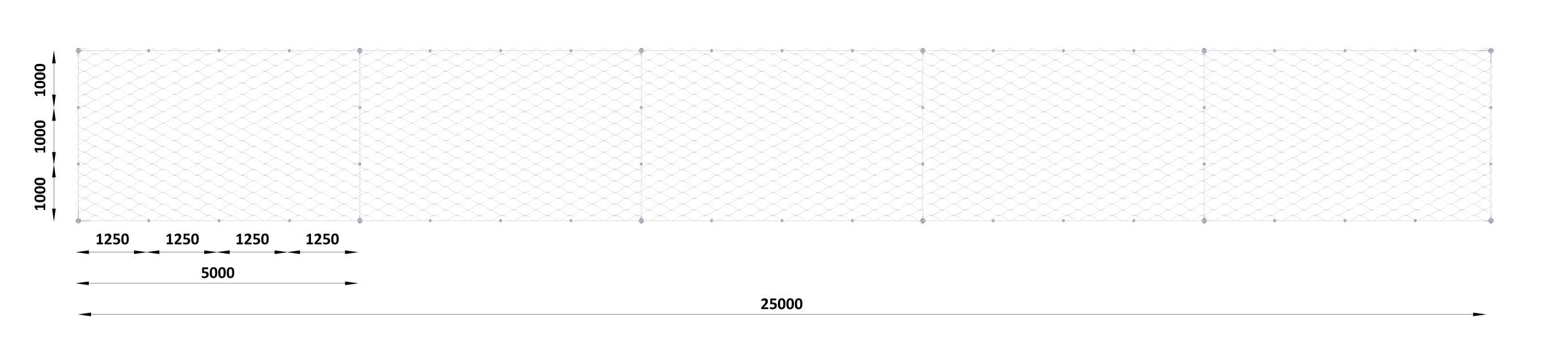 Príklad inštalácie fasádnej lankovej steny pre rozmer 3,0 x 25 metrov: