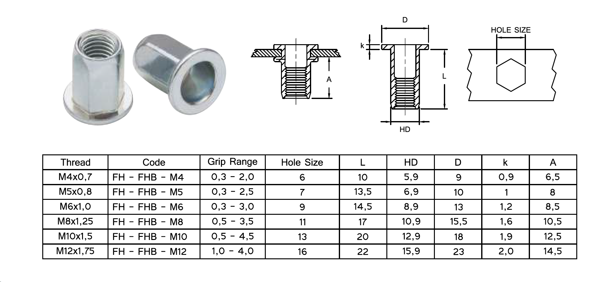 | FH-FHB-M6 | 14.5 | 9 | M6 | plochá | voľné | oceľ | pozink | šesťhranná | 0.005 kg | 9305 ks | 0,062 €bez DPH 0,0763 €s DPH | ||