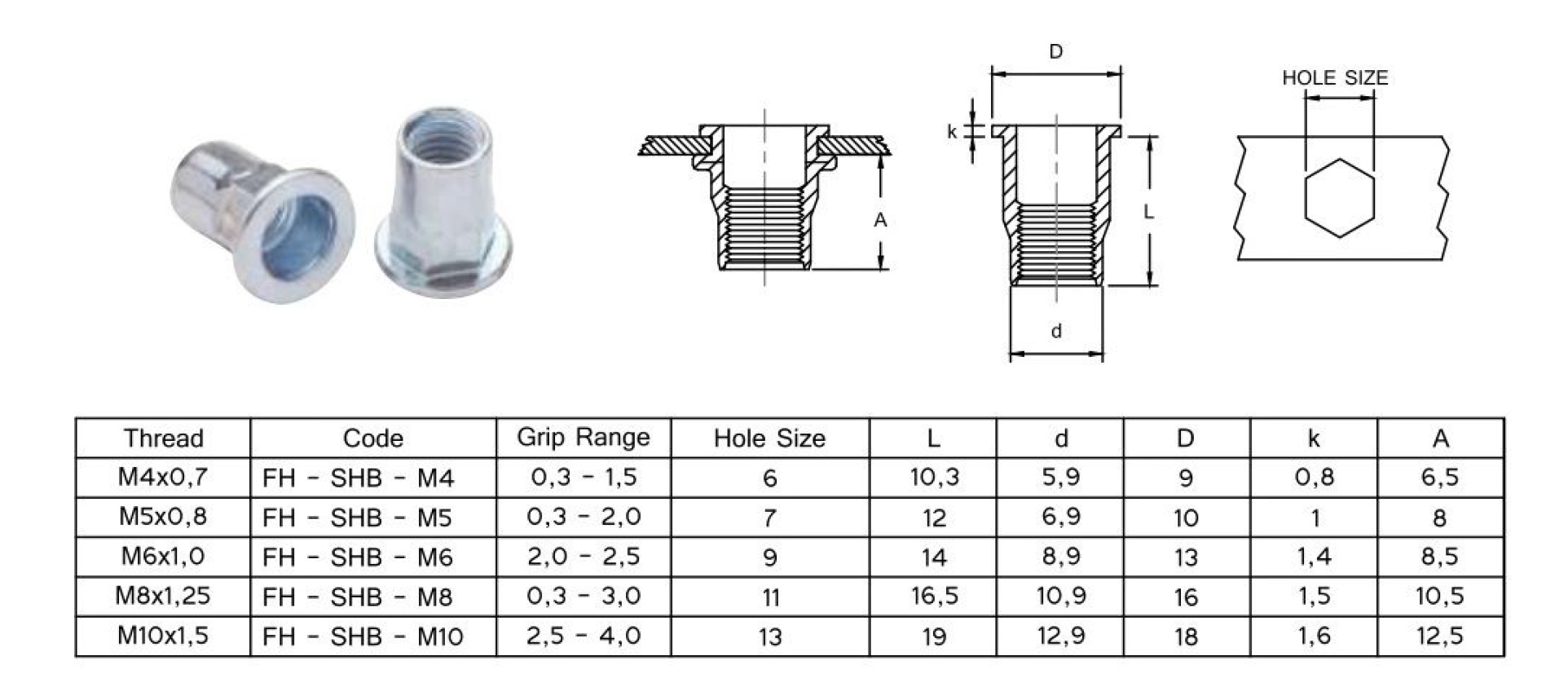 | FH-SHB-M5 | 10 | 0.3-2 | 7 | M5 | plochá | voľné | oceľ | pozink | šesťhranná, okrúhla | 0.002 kg | 830 ks | 0,061 €bez DPH 0,075 €s DPH | ||