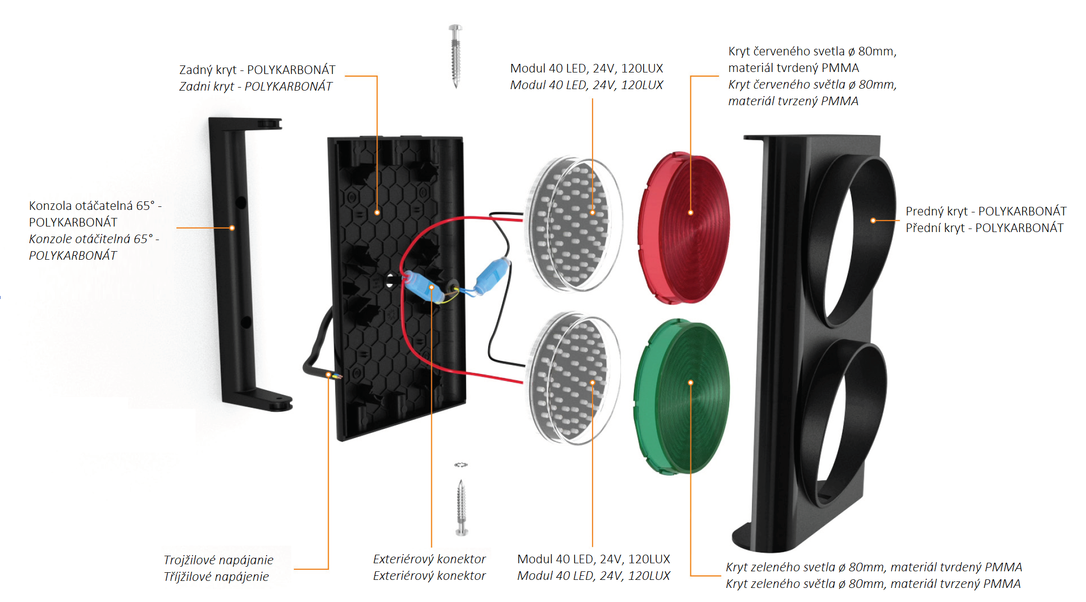 ASF Semafor ø 80 mm dvojkomorový, červená a zelená, 24 V