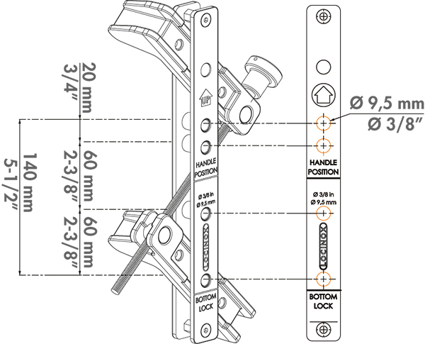 Sada náradia pre rýchlu a presnú montáž zámkov a dorazových líšt LOCINOX®. Pomocou prípravku DRILL-FIX ľahko vystredíte a vyvŕtate otvory na okrúhly, štvorcový alebo obdĺžnikový profil. DRILL-FIX sa dodáva v praktickom a pevnom kufríku, ktorý obsahuje potrebné náradie a prípravky na inštaláciu zámkov a dorazových líšt Locinox.