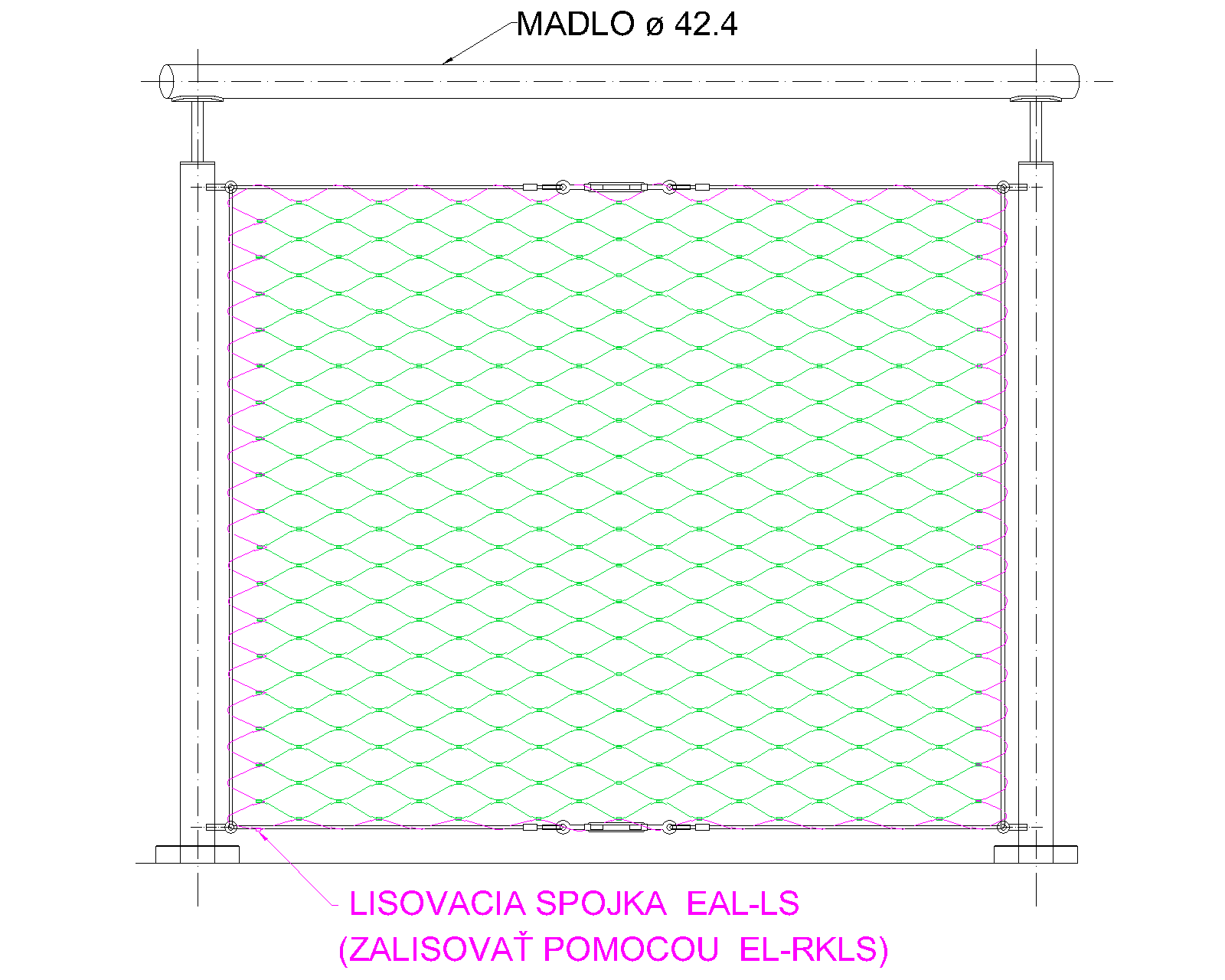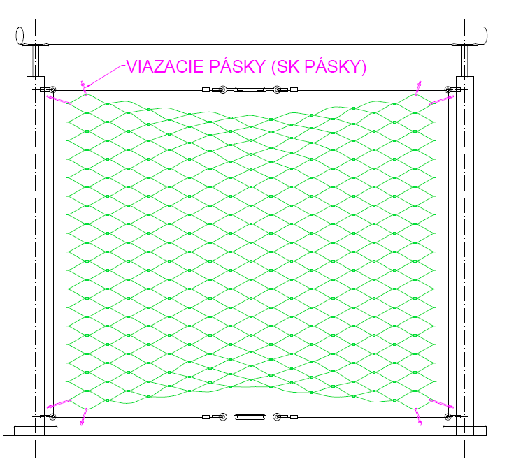 4. Upínacie lanko zalisujeme a následne odstránime SK pásky. Sieť tak ostane našponovaná: