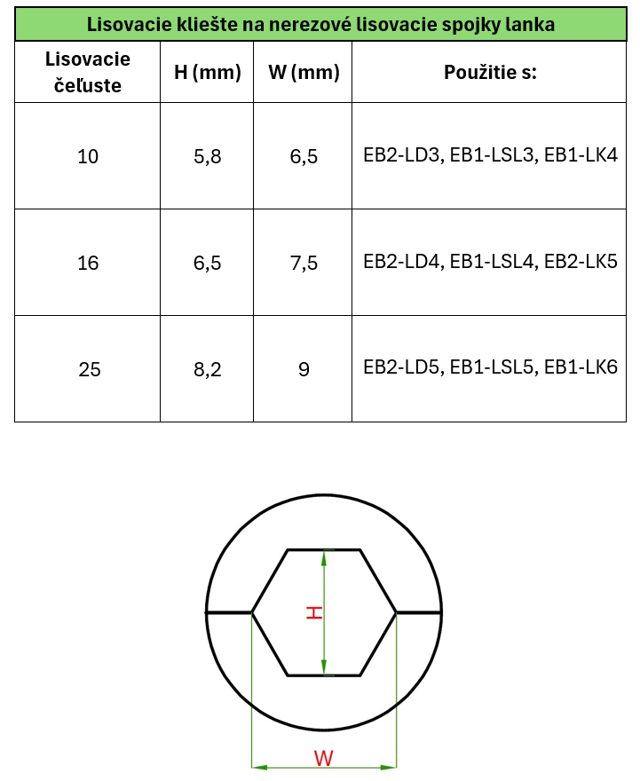 Kruhové lisovacie čeľuste pre kruhové, tenkostenné nerezové profily, veľkosť: 10,16 a 25mm2, napr. pre E-LK, EB2-LD a EB1-LSL sériu