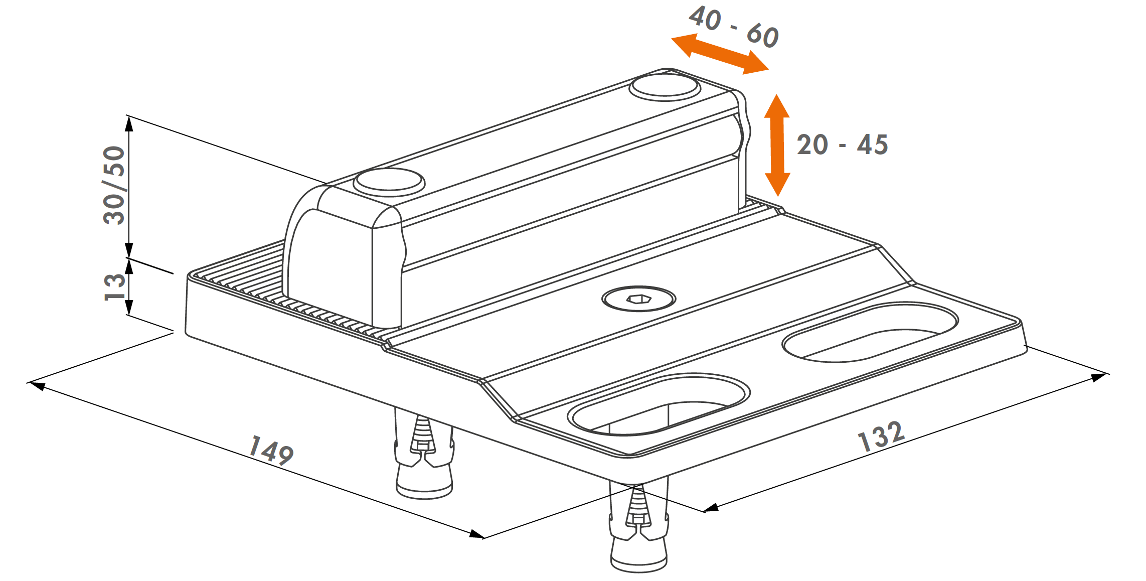 - Nastaviteľná hĺbka, vhodné pre profily brány 40 až 60 mm