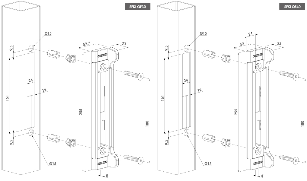1 KUS LOCINOX® SFKI-QF40 Dorazová lišta z nehrdzavejúcej ocele, na šírku profilu 40x40 mm