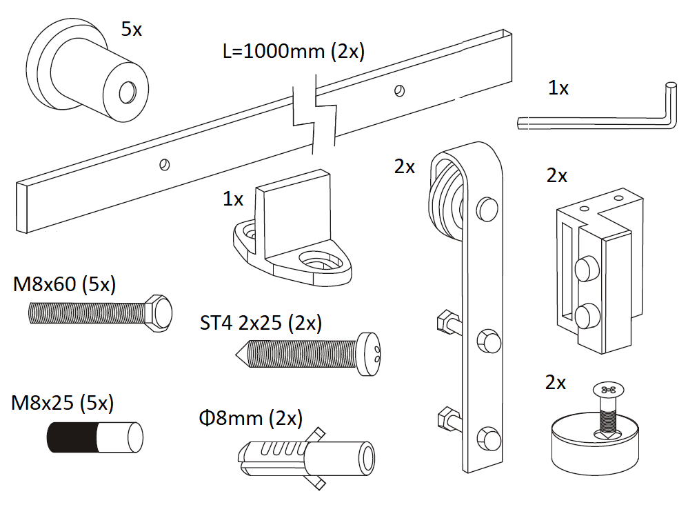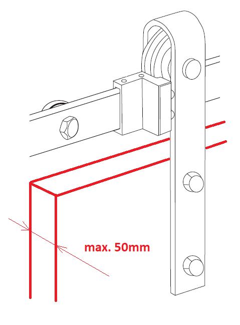 - Vymedzovacia podložka zabráni dvíhaniu / vysadeniu dverí z koľajnice. Inštaluje sa na hornú časť dverí.